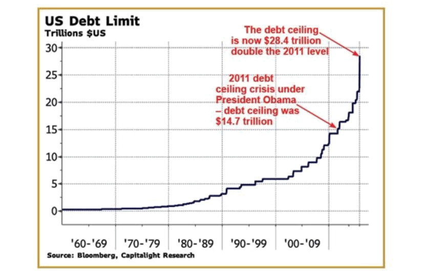US National Debt trajectory - deficit spending growing at an ever increasing rate.