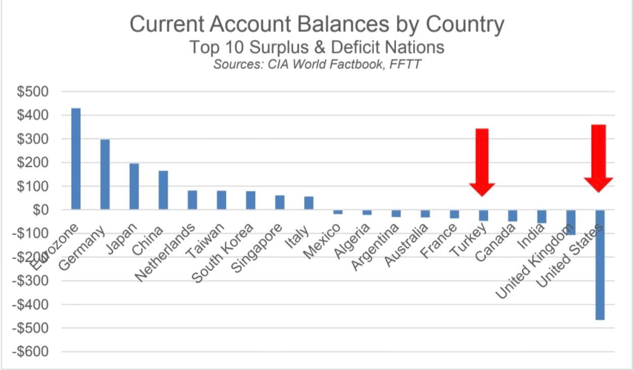 What does this mean for the US? As you can see, we are running a deficit that is moving in the wrong direction weakening our ability to compete on the global stage (foreigners own more of us than we own of them).