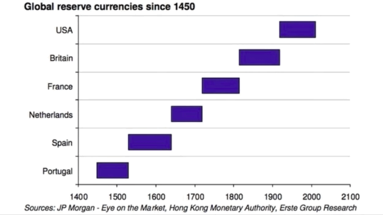 A Global Reserve Currency is a ‘currency’ that dominates trade settlements globally in that currency. The U.S. Dollar has been dominate in trade for about 100 years give or take. Previously, the pound/sterling was dominant prior to the emergence of the U.S. financial dominance.