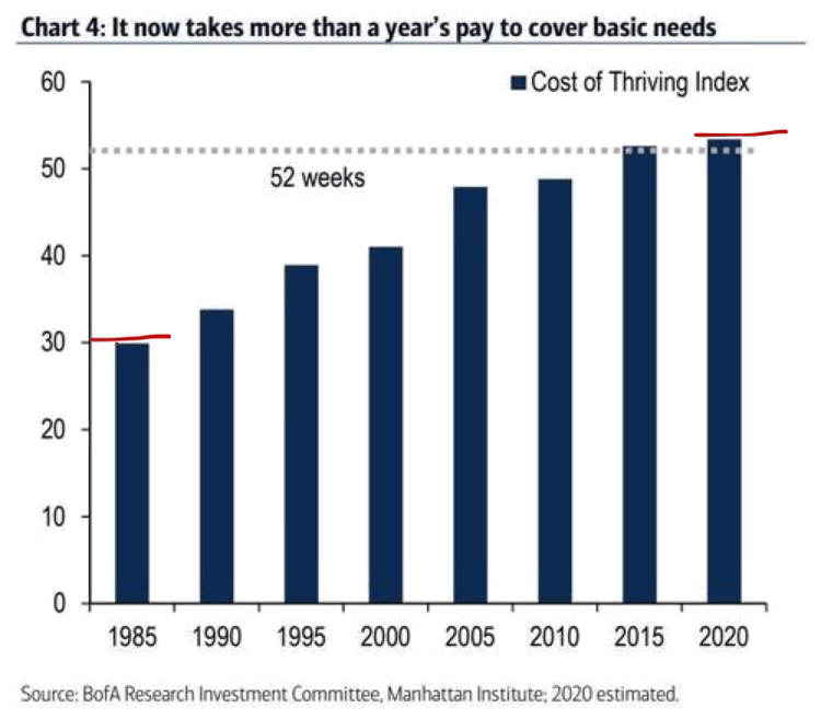 The “Cost of Living Index” measures whether it’s easier or harder to make ends meet today than in the past (spoiler alert: it’s harder today)