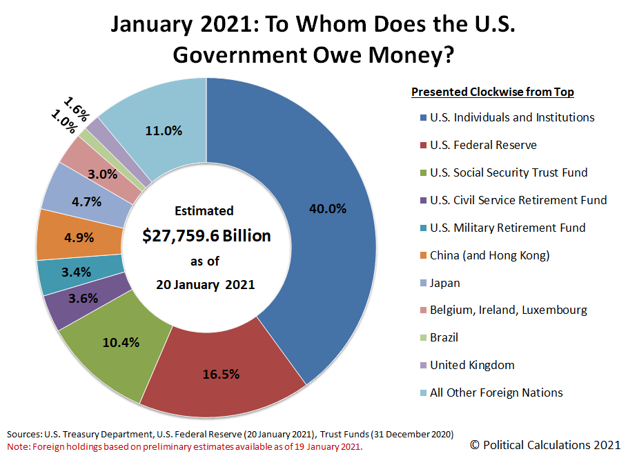 The largest exposure to our national debt is found here at home. As of January 2021, 73.9% of outstanding debt is held by U.S. entities. NOT China.